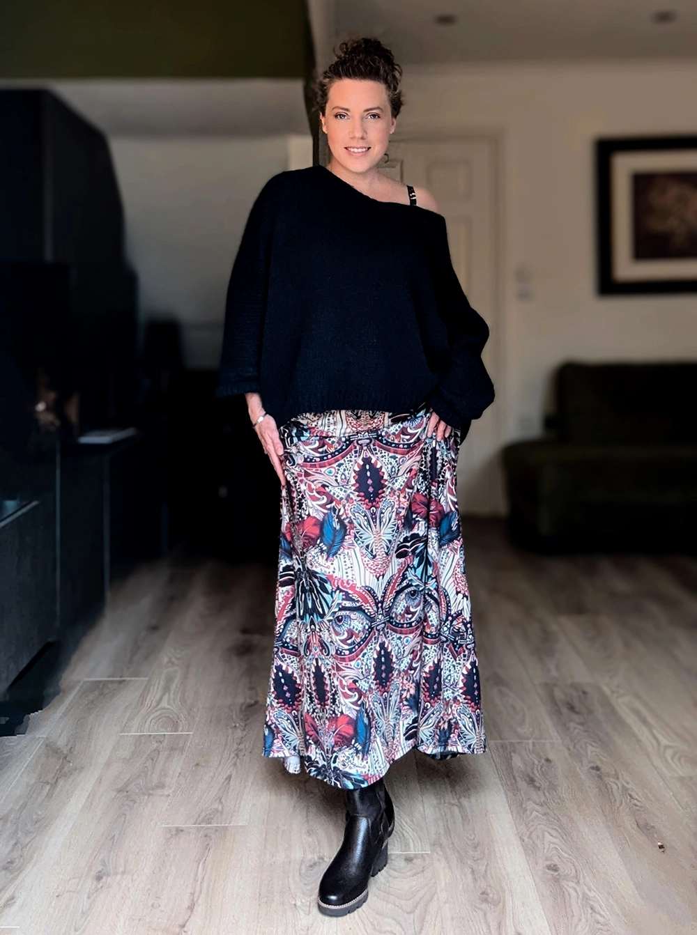 - Add Texture with Knits: Patterned skirts pair beautifully with textured sweaters or turtlenecks. A cozy knit in a solid color adds warmth and depth to the outfit.