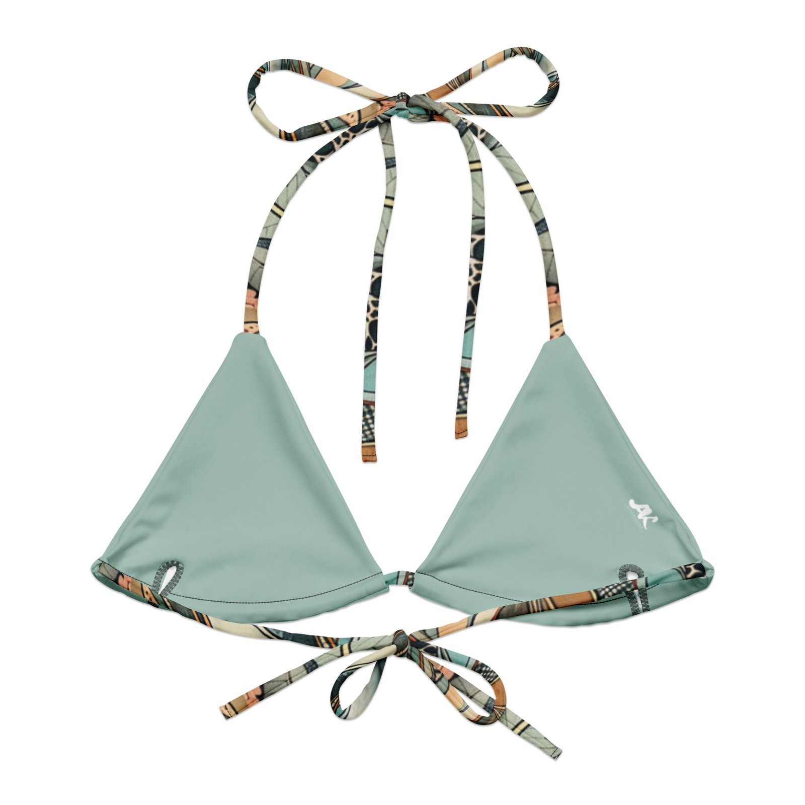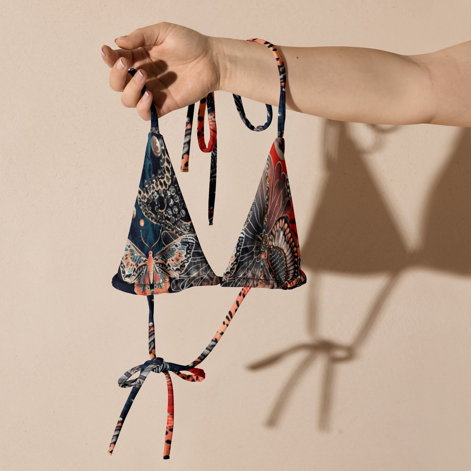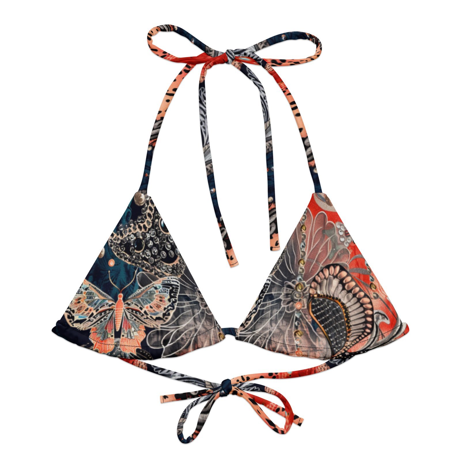 Elevate your beach style with our Celestria String Bikini top designed for both comfort and fashion. Crafted from soft recycled polyester with double-layering and UPF 50+ protection, this bikini ensures a memorable swim. Customize the straps to your liking and enjoy the unique, art-inspired fabric that makes each piece a one-of-a-kind creation. 🏄♀️👙🌞 #SwimInStyle #EcoChic #CustomSwimwear