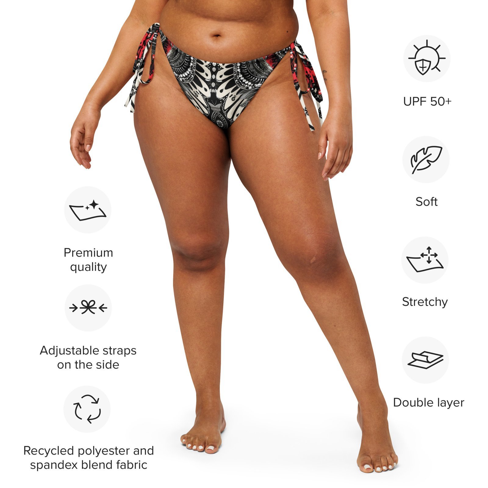 Elevate your beach style with our Cinnabar String Bikini Bottom designed for both comfort and fashion. Crafted from soft recycled polyester with double-layering and UPF 50+ protection, this bikini ensures a memorable swim. Customize the straps to your liking and enjoy the unique, art-inspired fabric that makes each piece a one-of-a-kind creation. 🏄♀️👙🌞 #SwimInStyle #EcoChic #CustomSwimwear