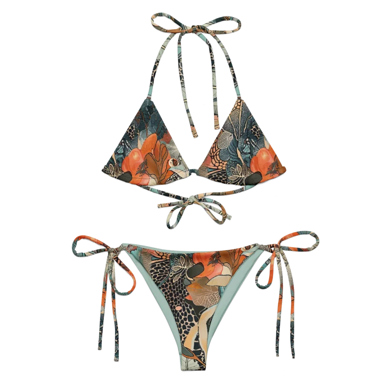 Elevate your beach style with our Ikebana String Bikini top designed for both comfort and fashion. Crafted from soft recycled polyester with double-layering and UPF 50+ protection, this bikini ensures a memorable swim. Customize the straps to your liking and enjoy the unique, art-inspired fabric that makes each piece a one-of-a-kind creation.