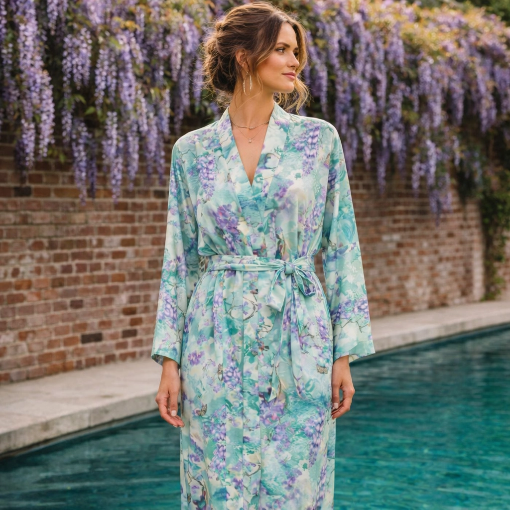 Experience the artistry of our ready-to-wear selections, meticulously designed to seamlessly blend style and versatility. From tranquil evenings to glamorous nights out, our satin kimono robe ensures you command attention and leave an indelible impression wherever your adventures take you.