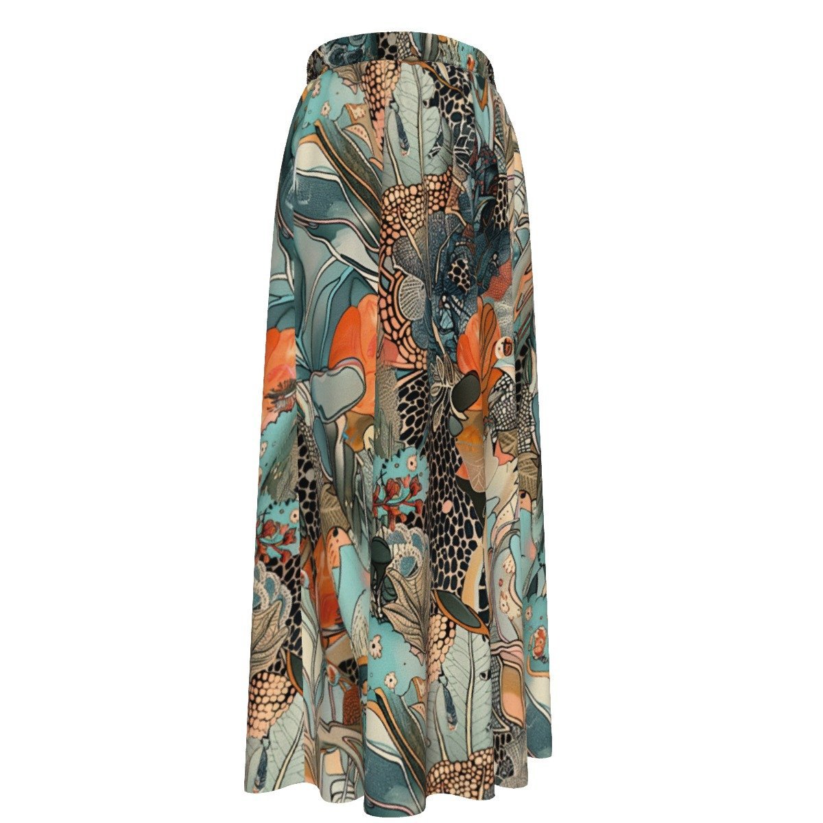 What truly sets the Ikebana Maxi Skirt apart is its captivating fabric design—mesmerizing abstract patterns evocative of traditional Japanese plant and floral illustrations.