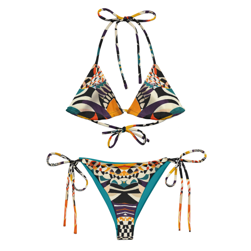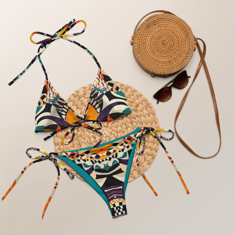 Elevate your beach style with our Kalahari String Bikini top designed for both comfort and fashion. Crafted from soft recycled polyester with double-layering and UPF 50+ protection, this bikini ensures a memorable swim. Customize the straps to your liking and enjoy the unique, art-inspired fabric that makes each piece a one-of-a-kind creation. 🏄♀️👙🌞 #SwimInStyle #EcoChic #CustomSwimwear