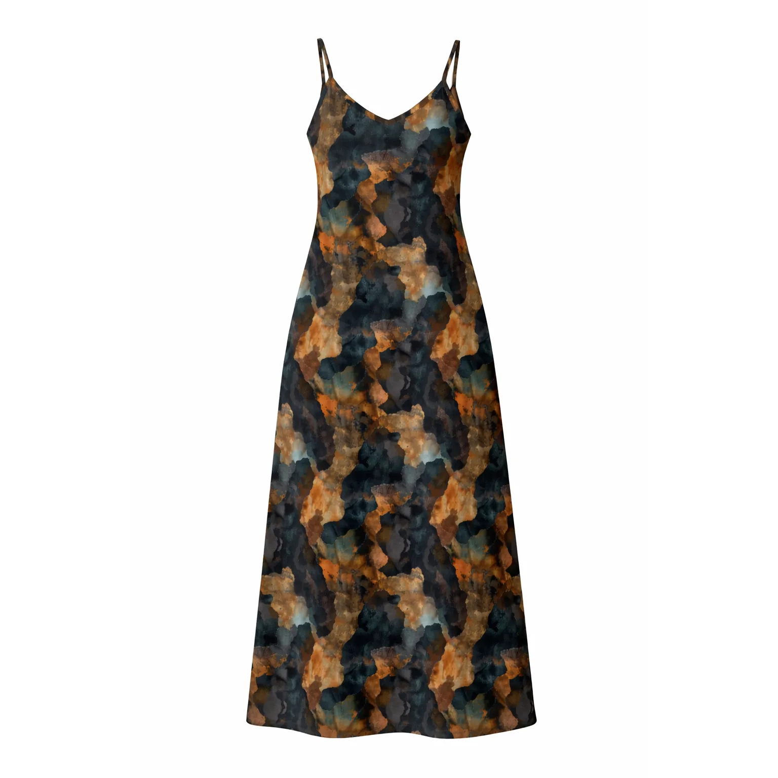 Its rich, abstract earth-toned print in deep charcoal, bronze and warm copper hues creates a sophisticated statement, making it perfect for summer holidays, evening dinners, resort wear or relaxed daytime styling. Lightweight and comfortable, the Laylah Maxi Dress offers an easy balance of style and versatility.