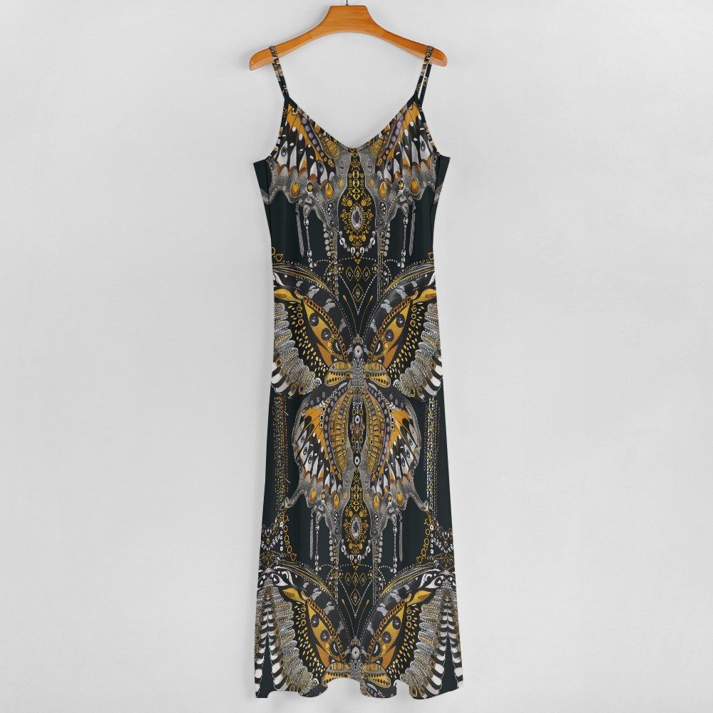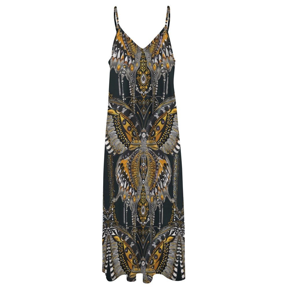 Step into the mesmerizing world of Zephyr, where the intricate charm of African art dances alongside the allure of butterfly motifs and tribal inspirations. Immerse yourself in the eternal grace of our spaghetti strap beach dress, a quintessential masterpiece from the Zephyr collection, meticulously tailored from luscious jersey fabric for an opulent touch.