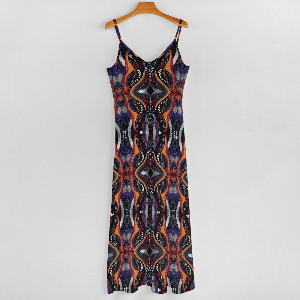 Step into the mesmerizing world of Zephyr, where the intricate charm of African art dances alongside the allure of tribal inspirations. Immerse yourself in the eternal grace of our spaghetti strap beach dress, a quintessential masterpiece from the Zephyr collection, meticulously tailored from luscious jersey fabric for an opulent touch.