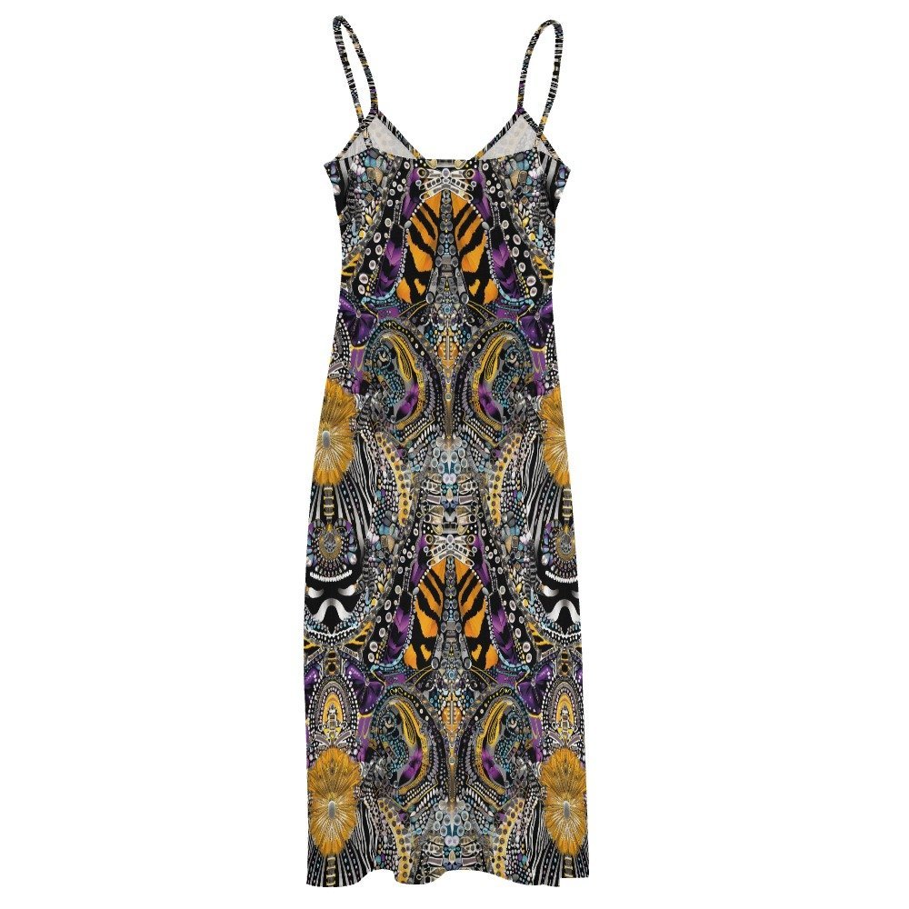 Step into the mesmerizing world of Zephyr, where the intricate charm of African art dances alongside the allure of animal print motifs and tribal inspirations. Immerse yourself in the eternal grace of our spaghetti strap beach dress, a quintessential masterpiece from the Zephyr collection, meticulously tailored from luscious jersey fabric for an opulent touch.