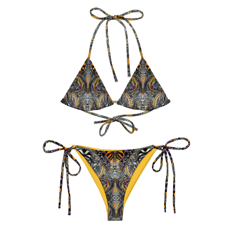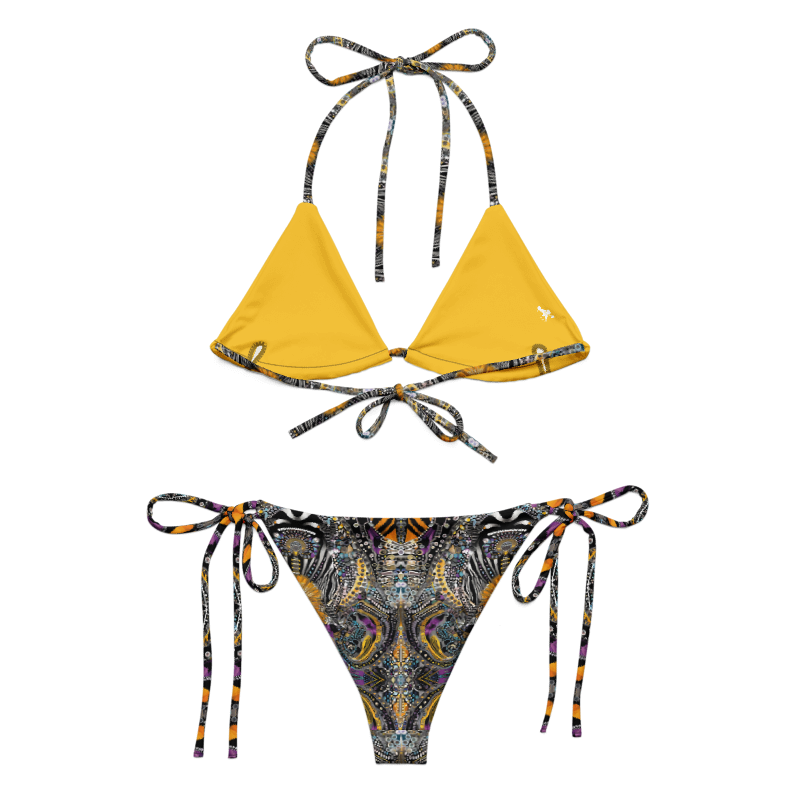 Elevate your beach style with our Zuri String Bikini top designed for both comfort and fashion. Crafted from soft recycled polyester with double-layering and UPF 50+ protection, this bikini ensures a memorable swim. Customize the straps to your liking and enjoy the unique, art-inspired fabric that makes each piece a one-of-a-kind creation. 🏄♀️👙🌞 #SwimInStyle #EcoChic #CustomSwimwear