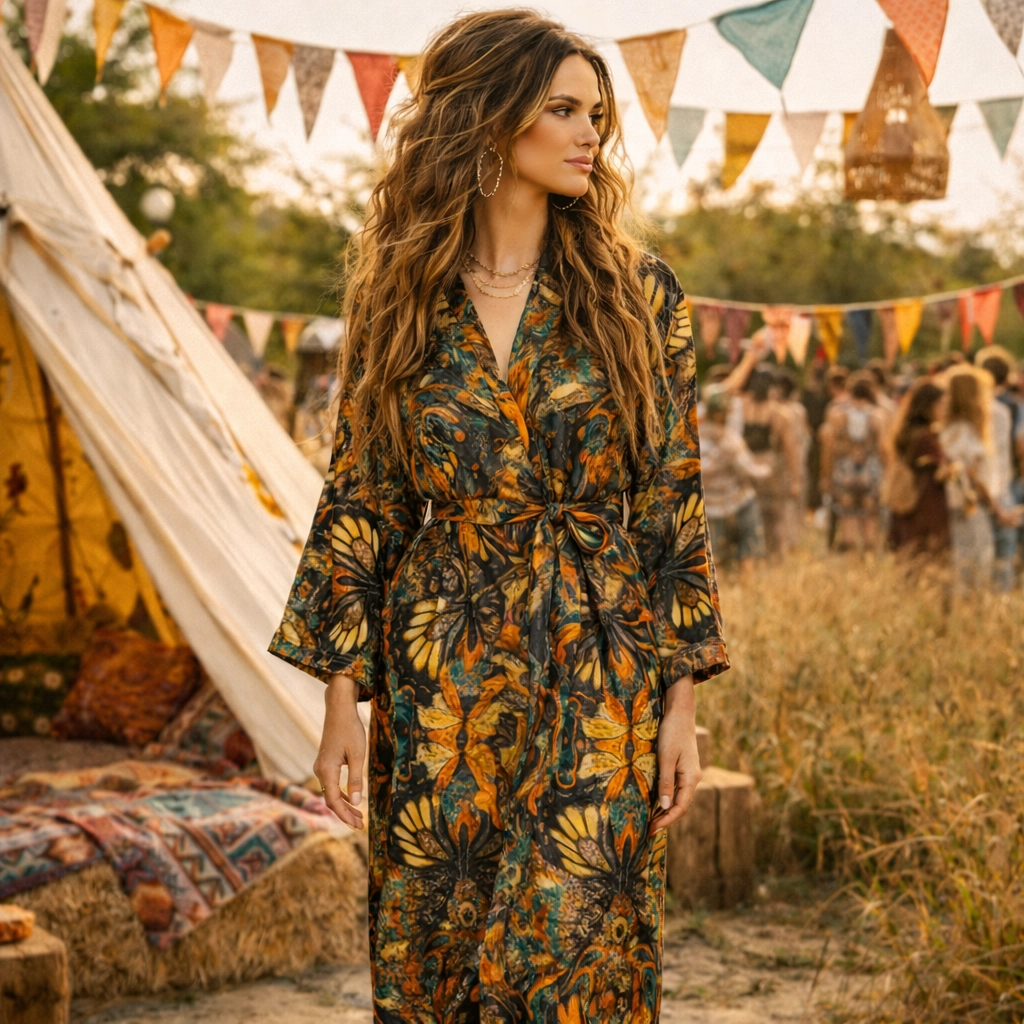 Crafted with the utmost attention to detail, this satin kimono robe features mesmerizing abstract patterns reminiscent of African tribal art, adding a touch of cultural richness to your attire. Whether lounging at home, strolling along the beach, or attending a soirée, this robe promises both comfort and sophistication.