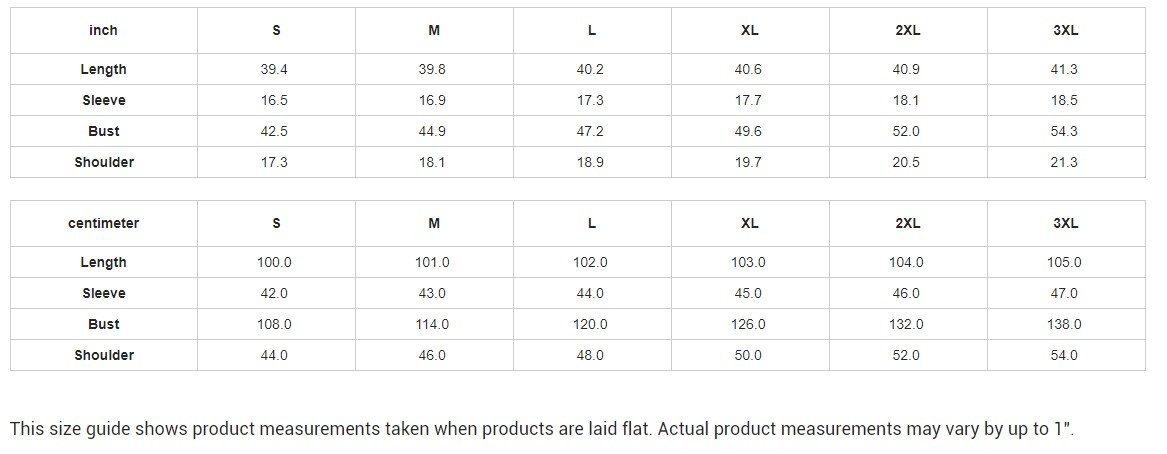 | centimeter | S | M | L | XL | 2XL | 3XL |